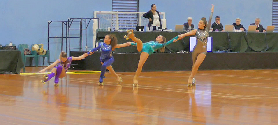 This is the "team sport" side of skating, in which between 4 and 24 skaters perform a routine that includes elements of dance and freeskating.